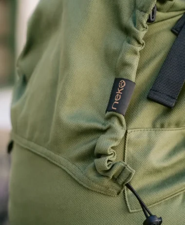 Permite ajuste del panel en ancho y en largo. Ajuste en ancho mediante botones en la zona del cinturón y con cordones en lo alto del panel.