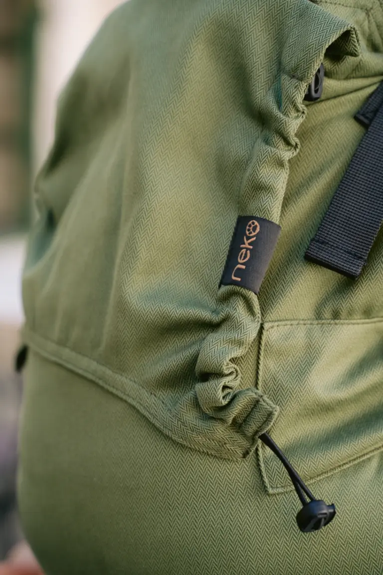 Los tirantes pueden cerrarse al cinturón (bebés pequeños) o al panel (bebés que se sientan solos).