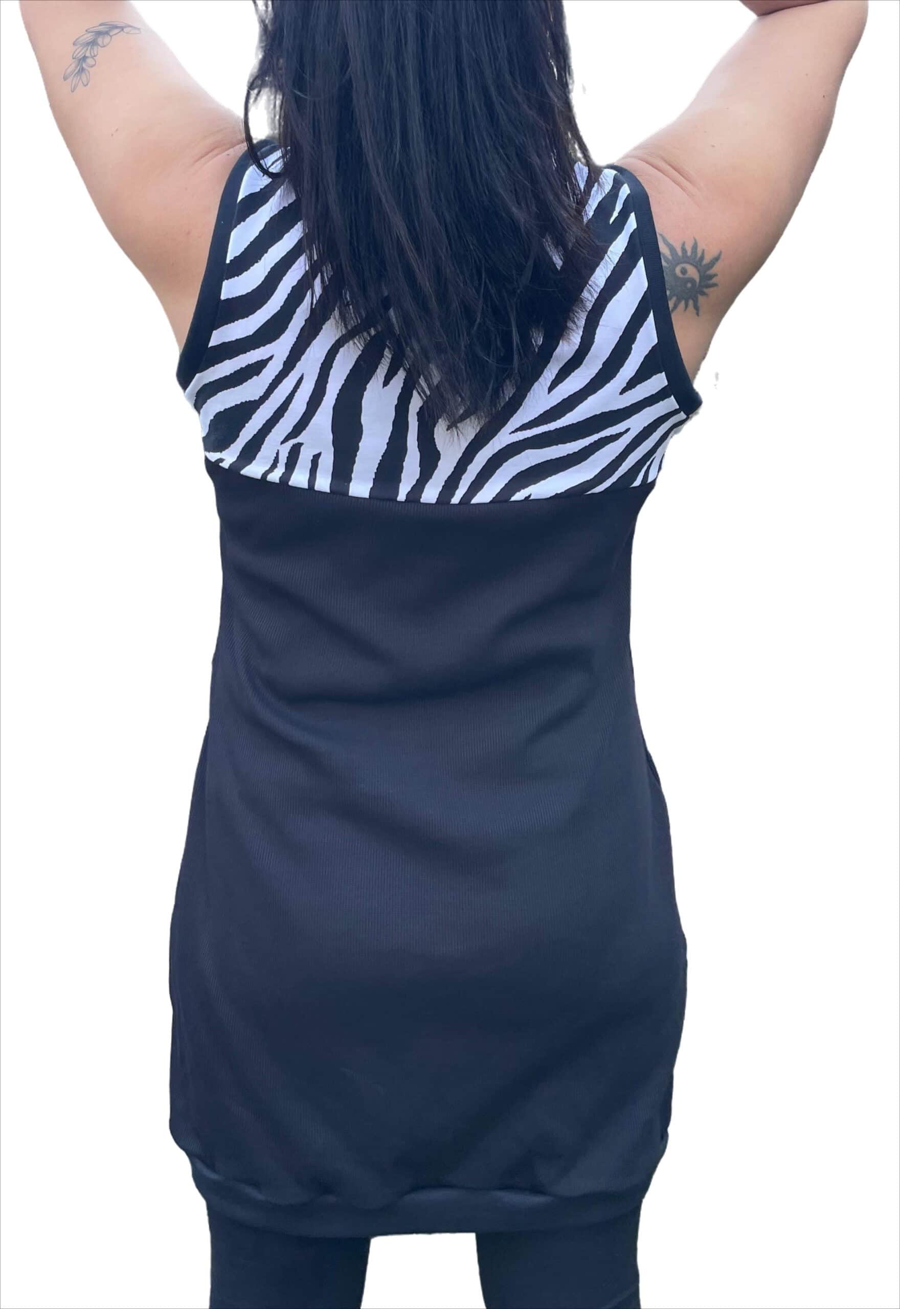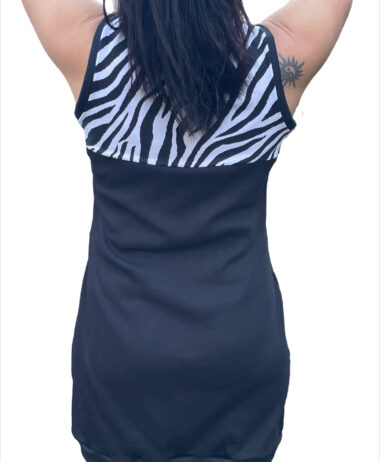 Vestido negro, estampado cebra, con cremallera